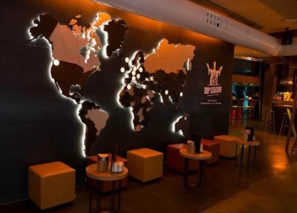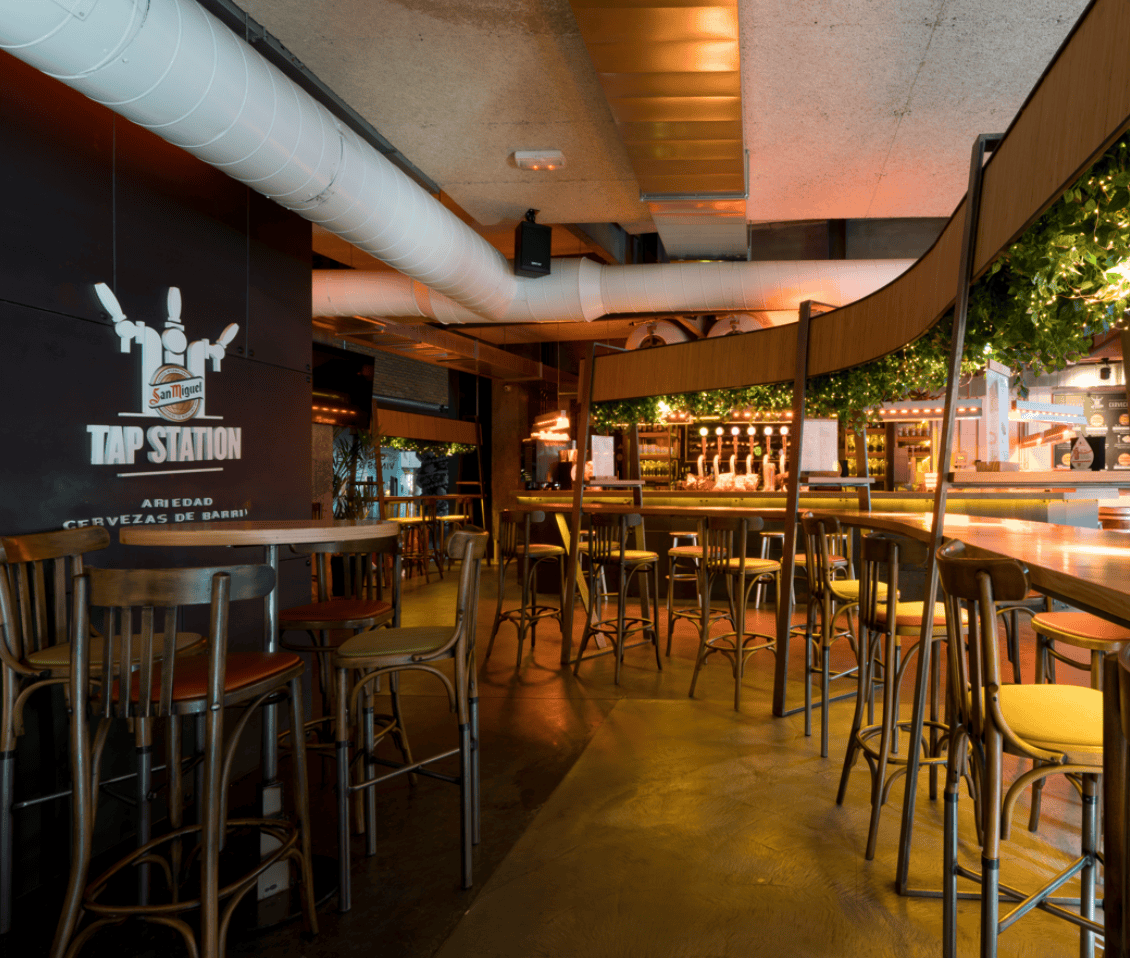 En la planta baja de Azkuna Zentroa, puedes degustar una amplia selección de cervezas acompañadas de tapas y buena música en el local más canalla de la Alhóndiga. Con entrada por la calle y por dentro del edificio, tendrás para degustar de un sinfín de cervezas, tapas y vinos siempre acompañados de buena música. Con una decoración e iluminación más oscura, te anima e invita a entrar y pasar ahí un buen rato. En caso de que haga sol, puedes sentarte en su terraza y tirarte horas charlando. ¡Aquí no sirven café, para eso tienes las cafeterías! Te recomiendan pedir para picar la ensaladilla rusa, sus conservas o quesos y el Steak Tartar. Además, si te apetece cenar, es el bistró ideal del grupo Yandiola. Fueron participantes en el Campeonato Oficial de Hostelería de España Tapas y Pintxos y se llevaron el Premio al XV Concurso Nacional de Tapas 2019 Madrid Fusión. The Boar fue ganador del último campeonato de pintxos Bilbokatessen por Mahou-San Miguel. ¡Las cervezas de la Alhóndiga te están esperando!