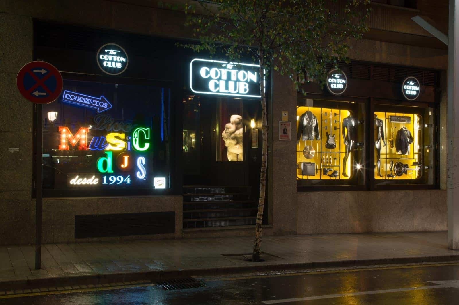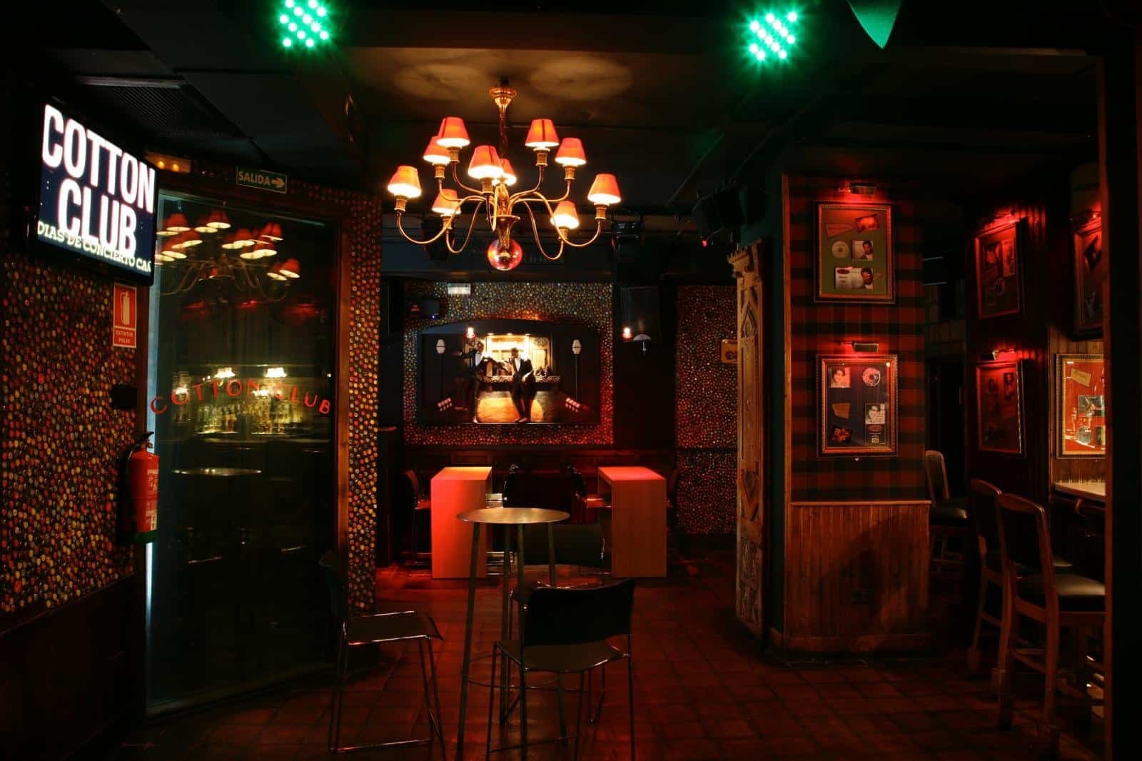 Cotton Club es un clásico bilbaíno desde hace 30 años, ya que lleva abierto desde 1994. Por este local han pasado grandes estrellas de la música y mantiene activa su programación musical. Han pisado su escenario artistas como, por ejemplo, Antonio Orozco, Melendi, David Otero, Pereza, Pablo López, Dani Fernández, Sergio Dalma o Maldita Nerea. Todos los viernes hay conciertos y después djs. La música que suena varía según el dj, que cambia cada fin de semana. Su nueva apuesta es hacer un “Stair Of Fame” con los djs: la idea es conseguir lo mismo que han logrado con grupos musicales, siendo un pequeño local en Bilbao por donde pasan artistas de alto nivel y empezar a hacerlo también con djs. No tienen hueco en las paredes por la cantidad de cuadros colocados de las bandas que han tocado y quieren pasar a poner placas de los djs que pinchen en los peldaños de la escalera, una especie de paseo de la fama de Hollywood en el Cotton Club Bilbao. Además, aquí el tardeo se llama Cottoneo y tiene lugar los sábados desde las 17h. Los horarios del local son: Jueves 23:00 – 4:30h, Viernes 23:00 – 6:00h (conciertos antes), Sábados 17:00 – 6:00h (tardeos a las 17h). La decoración del local es musical, con chapas y recuerdos por todas partes. Buenas copas, buen ambiente y un lujo en la noche de Bilbao.