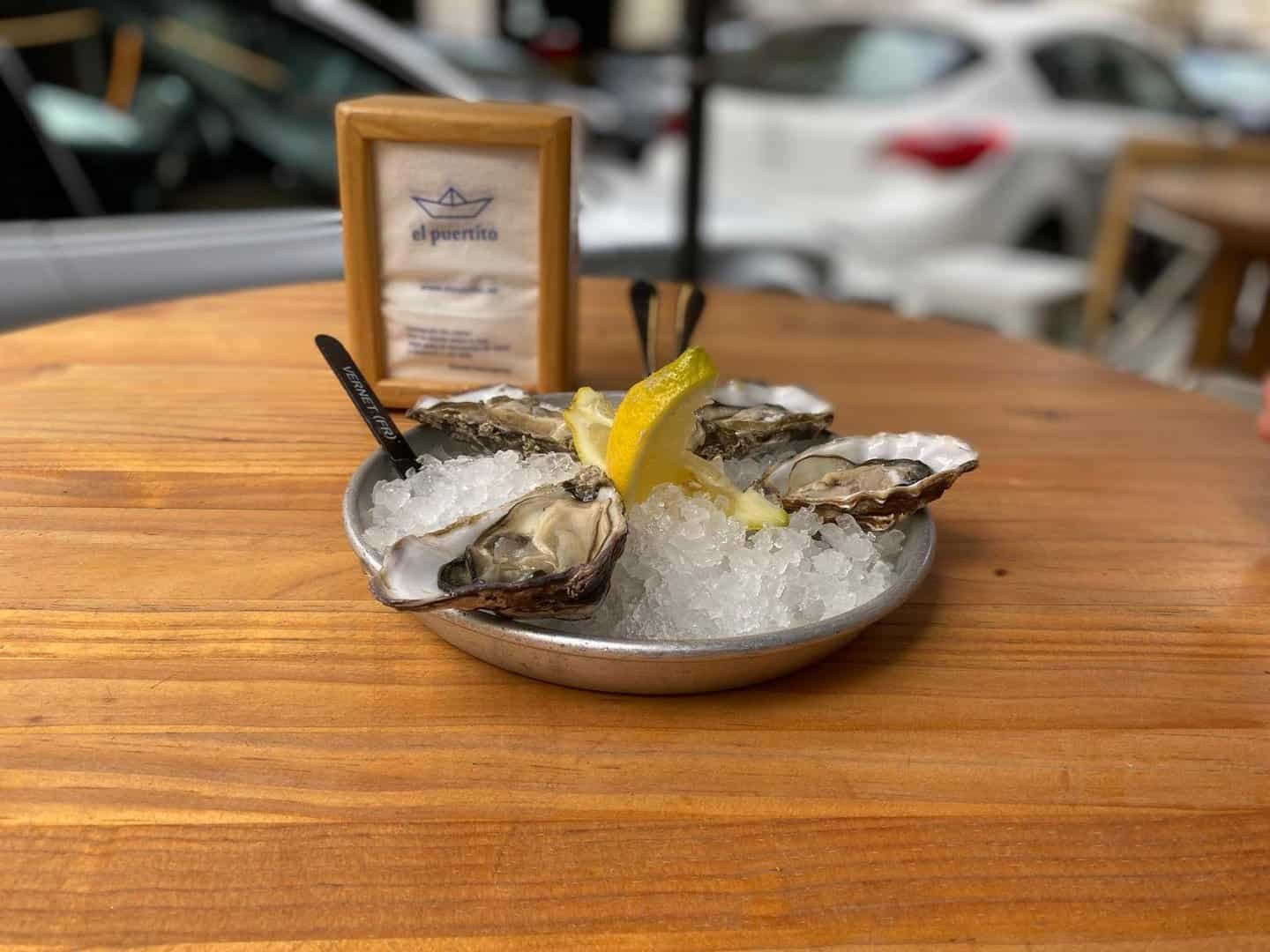 Ostras y bebida. Sólo eso. El puertito abrió sus puertas en 2013 en la mítica calle de pintxos y poteo de Indautxu y revolucionó la forma de comer ostras en este país. ¡Es el primer bar de ostras de Bilbao! Un concepto innovador, en el que puedes pedir variedad de ostras por unidad de diferentes países y zonas de cultivo. Nadie lo había hecho antes. ¡Zarpa hacia El Puertito, donde las ostras son el nuevo rock & roll y el maridaje es ley! Aquí no hay cuentos, solo un ambiente crudo y fresco como el océano, ritmos que hacen bailar a las perlas y tragos que levantan mareas. Este es el punto de partida hacia la leyenda marina. Inaz Fernández fue un visionario, aunque le llamaron loco, le salió muy bien: quitó el barniz de lujo a las ostras a base de precios de mercado. Su máxima es “Quiero que todo el mundo se pueda permitir comer ostras”. Y en El Puertito de Bilbao, se puede.