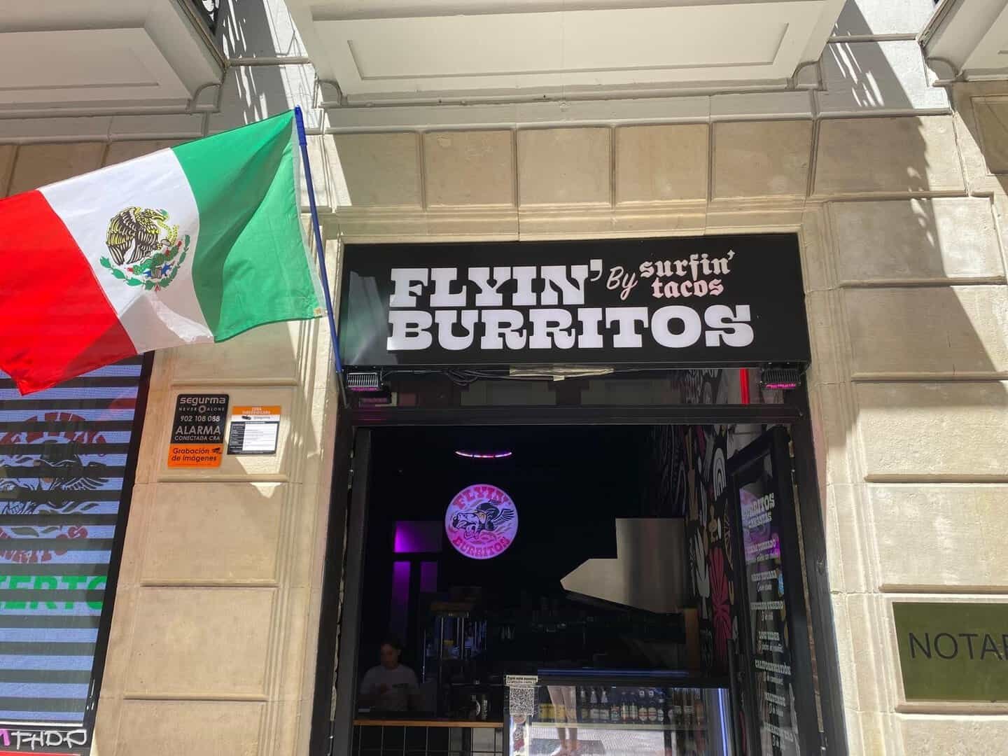 Flyin’ Burritos en Bilbao ofrece burritos con ingredientes cien por cien naturales de primera calidad. Se definen como la burrería norteña de Surfin’ Tacos, 100% mexicana, ahora en la salida del metro de Berástegui, Abando. Preparan burritos muy locos con todo el sabor, rellenos de verdaderos guisos mexicanos, cocinados a fuego lento. Cocinan guisos caseros, pura proteína y productos naturales. Todo casero y muy mexicano. Son recetas fronterizas ¡con mucho punch! Tú eliges si echarle bien de salsa picante o no. Flyin’ Burritos solo está disponible para llevar y recoger en el local, take away y… ¡a comer pinches burritos!