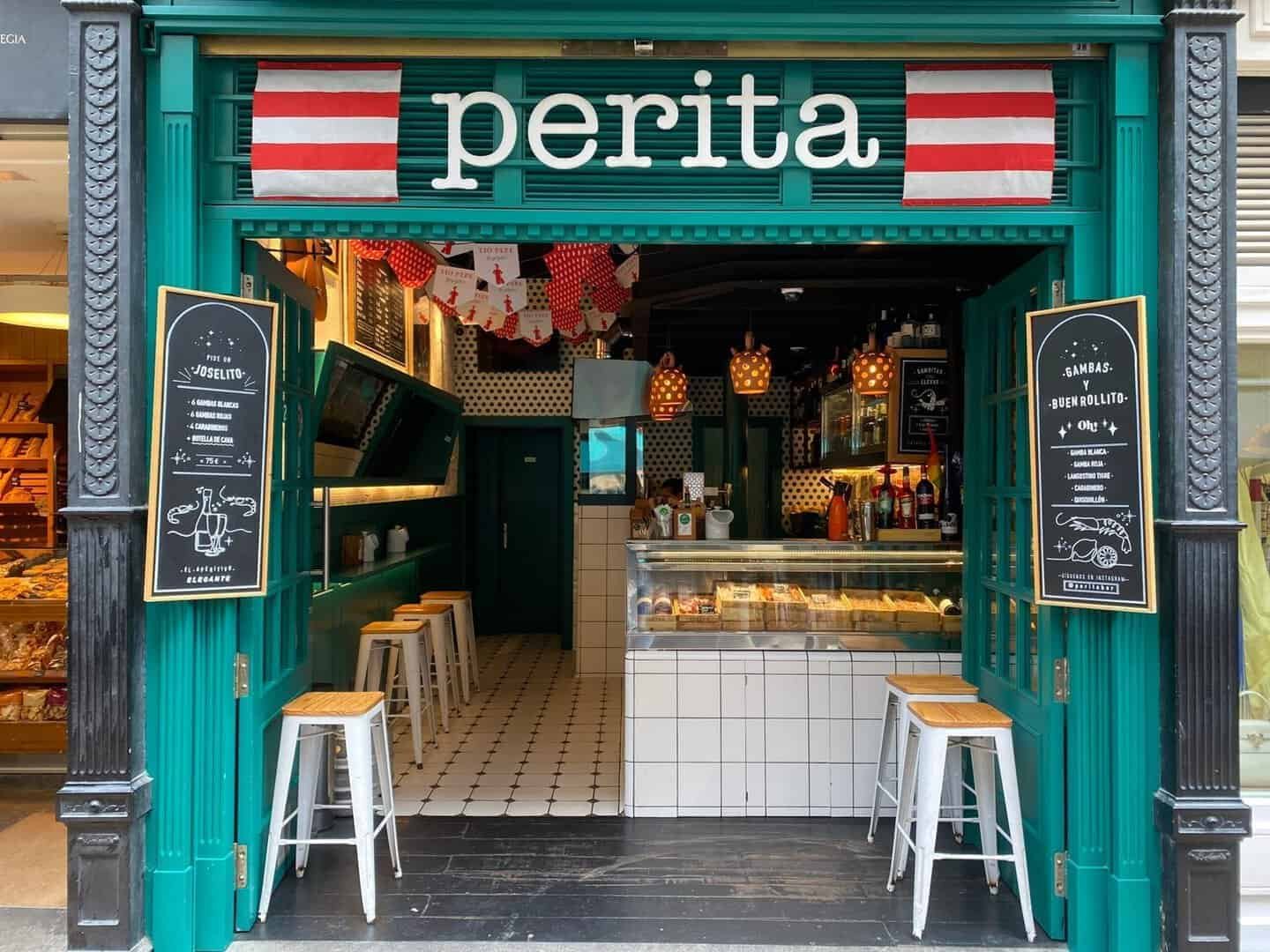 Sin duda, es el bar más “perita” de Bilbao. Como dicen los malagueños, un plan “perita” es algo guay y divertido. Y por eso abrió Perita Bar, porque no existía nada parecido en Bilbao. Una idea original de Inaz Fernández, fundador de El Puertito -el primer bar de ostras de Bilbao- y creador también de Perita Bar, el bar de las gambas. Un local en pleno centro de Moyua, especializado en gambas, aire de poniente, olor a sur y musiquita de la buena. Quisieron traer el sur al norte y lo han conseguido. Su decoración, el ambiente y la brasa donde hacen todo tipo de gamba, la blanca de Huelva, la gamba roja, gamba mediterránea no dejan indiferente a nadie. ¡Tienes expuesto el género en su escaparate como si de una pescadería se tratara! La familia de las gambas, a tu disposición. Tú eliges, ellos cocinan.